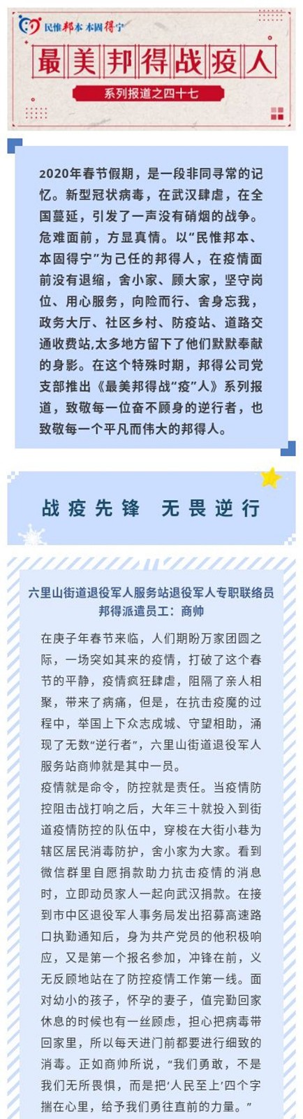 最美邦得戰(zhàn)“疫”人—— 系列報(bào)道之(四十七)