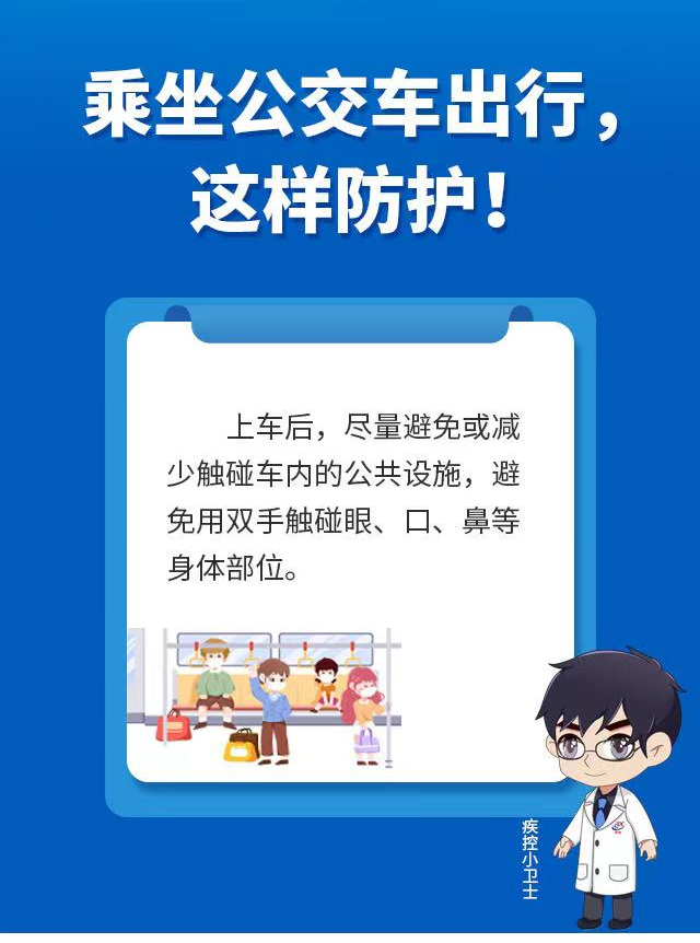 公交車是市民出行的重要公共交通工具,濟南市疾控中心提醒市民,在乘坐公交車出行時,應配合公交部門采取的疫情防控措施,全程規(guī)范佩戴口罩。還要做好以下幾點防護: